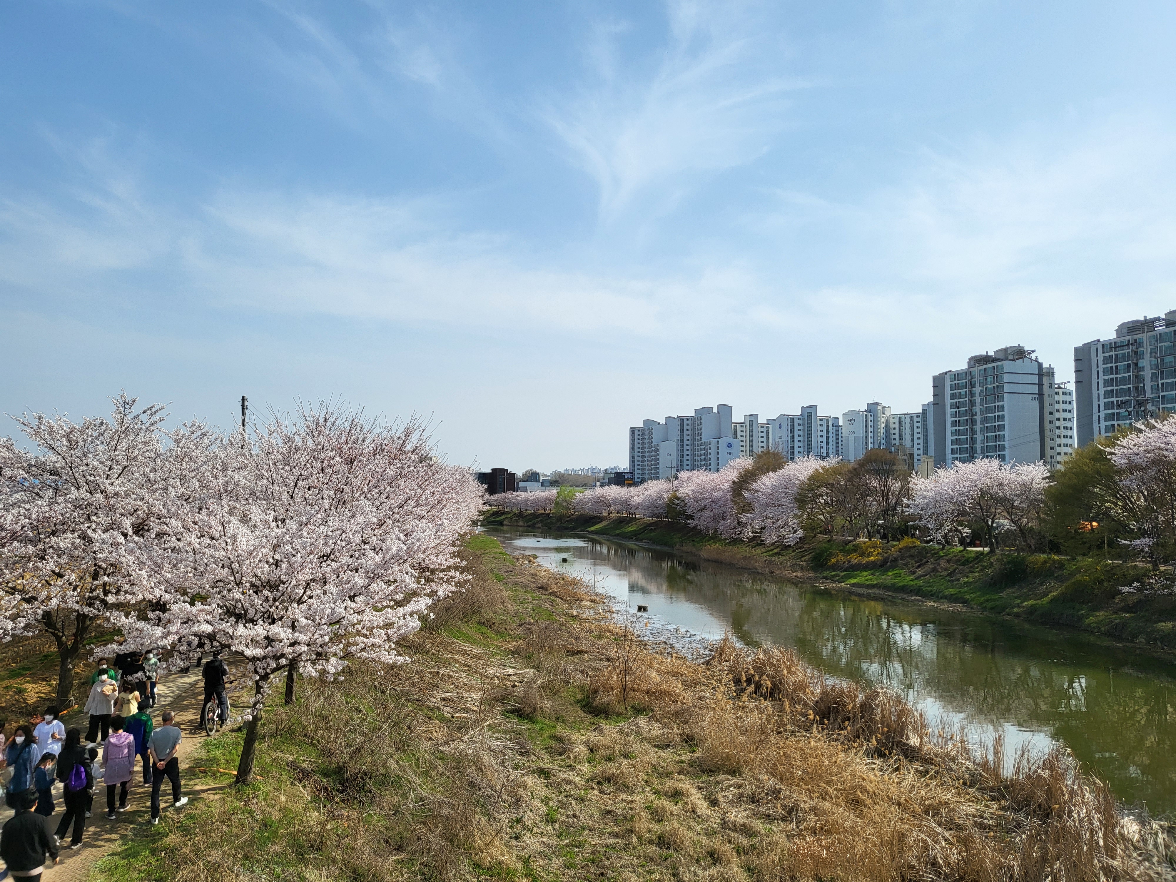 날씨가 좋아 수원 벚꽃명소 황구지천에도 사람이 많았다.